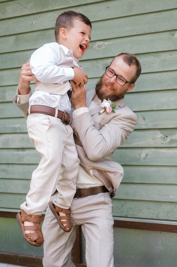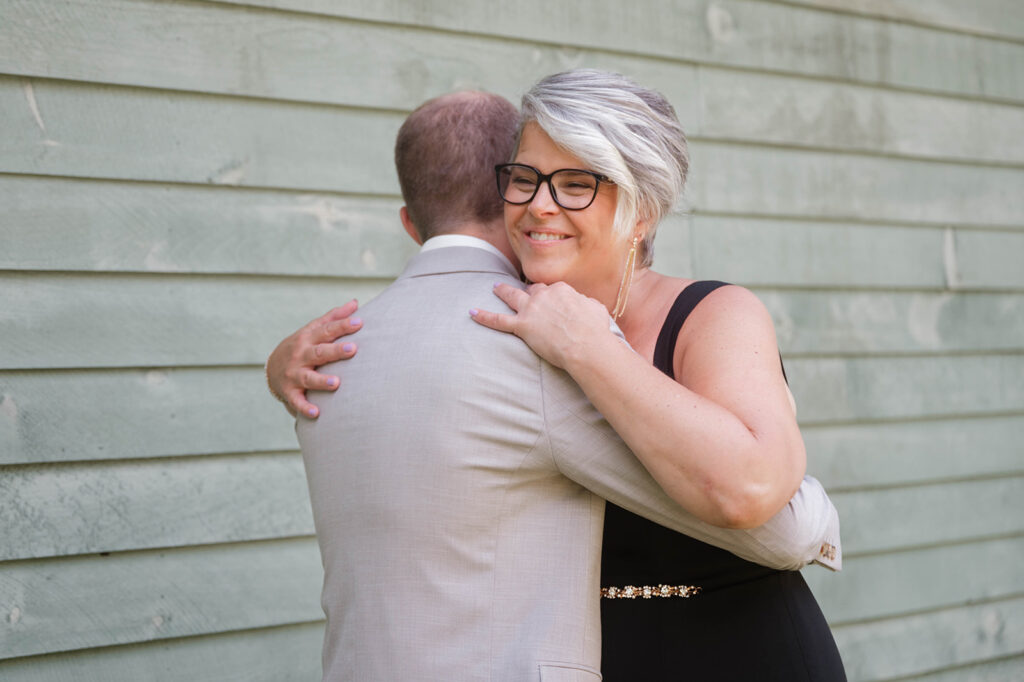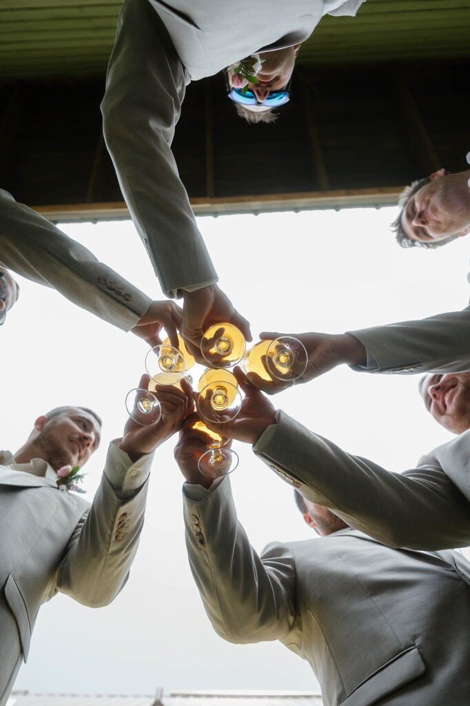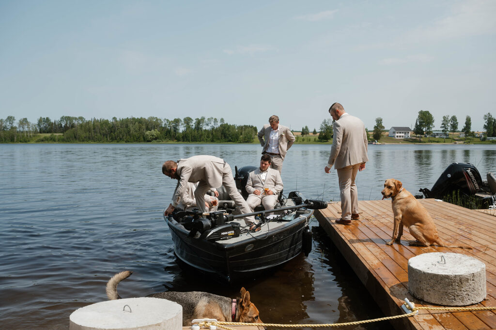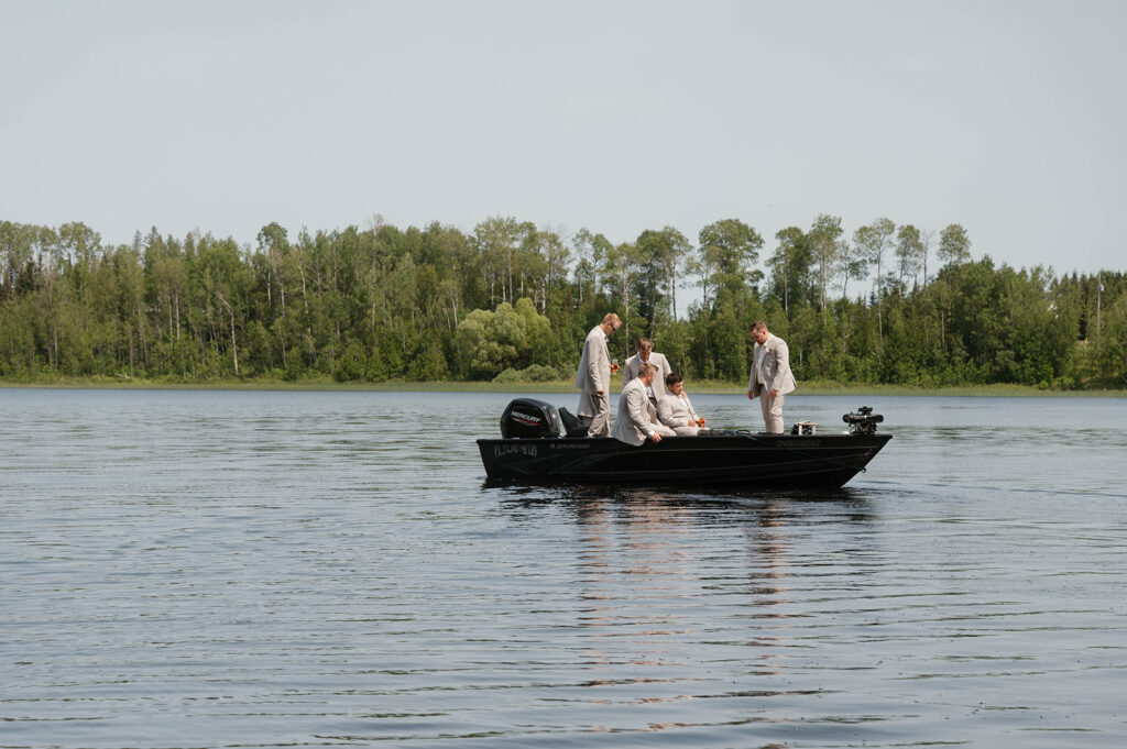 While Megan was surrounded by her girls, Cody got ready with his groomsmen and shared a heartfelt first look with his mom—a sweet and often-overlooked moment that we were so glad to capture. Afterwards, the guys hopped on a boat for a little celebratory ride across the lake, creating one of the most unique and fun groom-party moments we’ve seen!