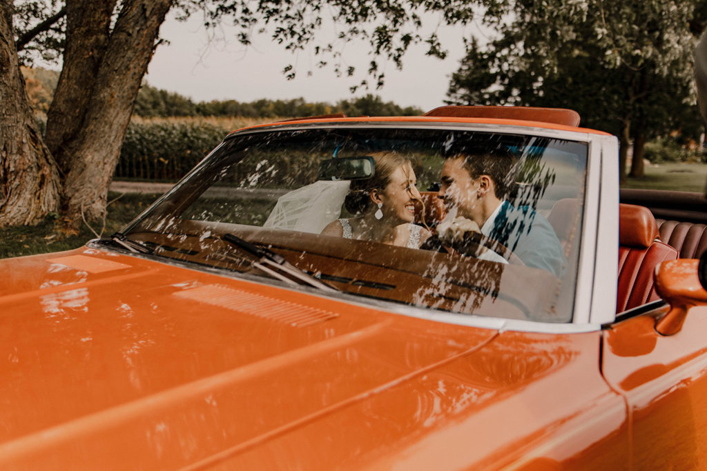 We took a few photos then, because we knew that it was going to rain but hoped for a sunset later. But these photos were beautiful, with the corn field, a fun car, & down the dirt road.