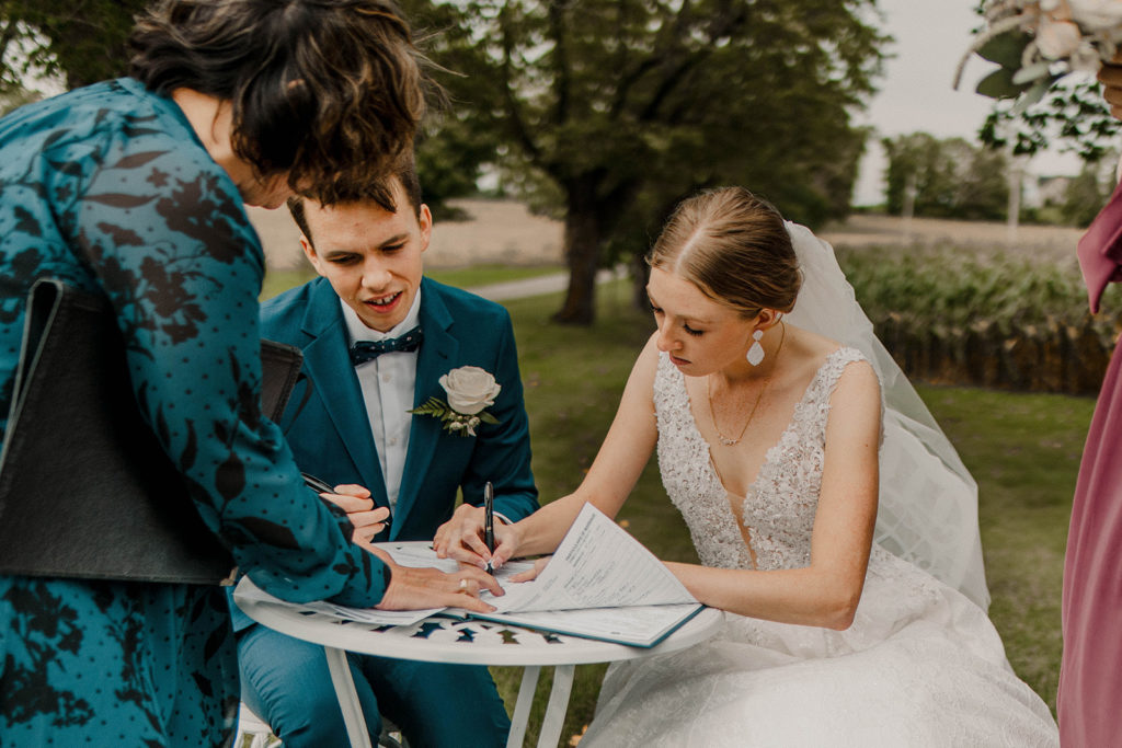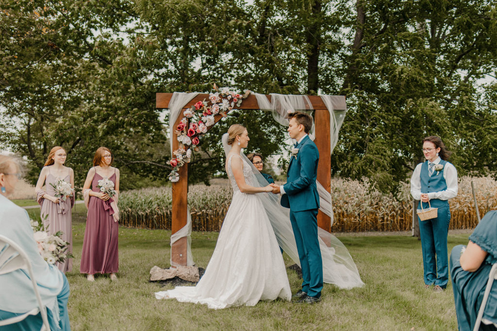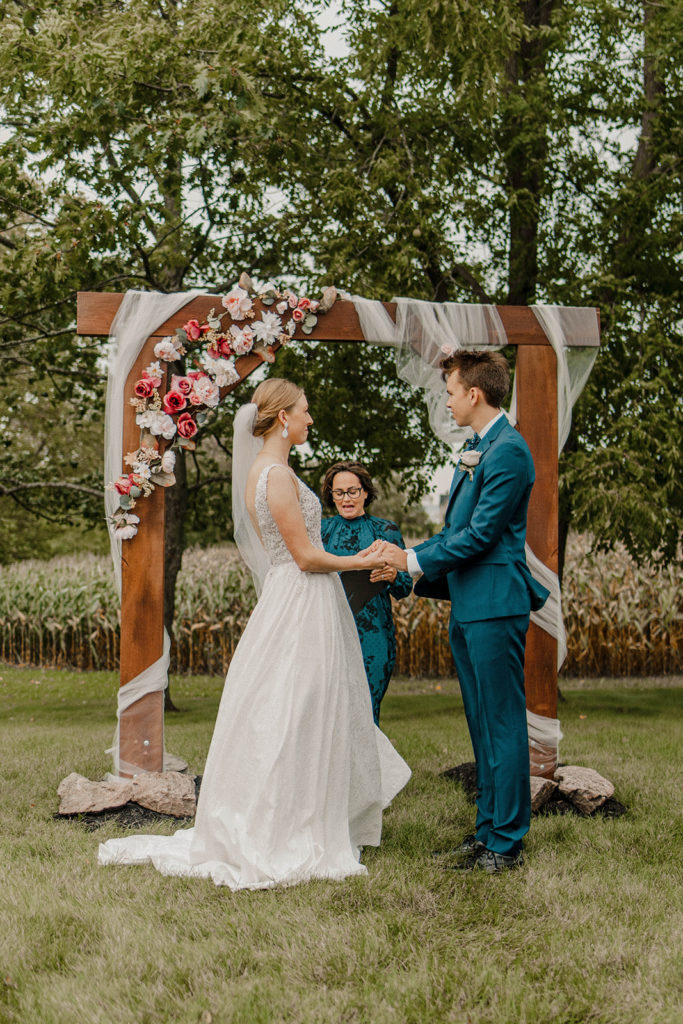 After the first look came the ceremony. The officiant was True North Ceremonies and she did such an amazing job. The whole ceremony was beautiful & tear-jerking. The way they read their own vows from their custom vow books was beautiful. Their first kiss was also just amazingly beautiful.