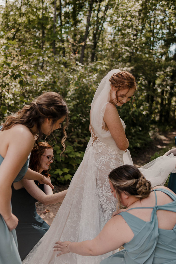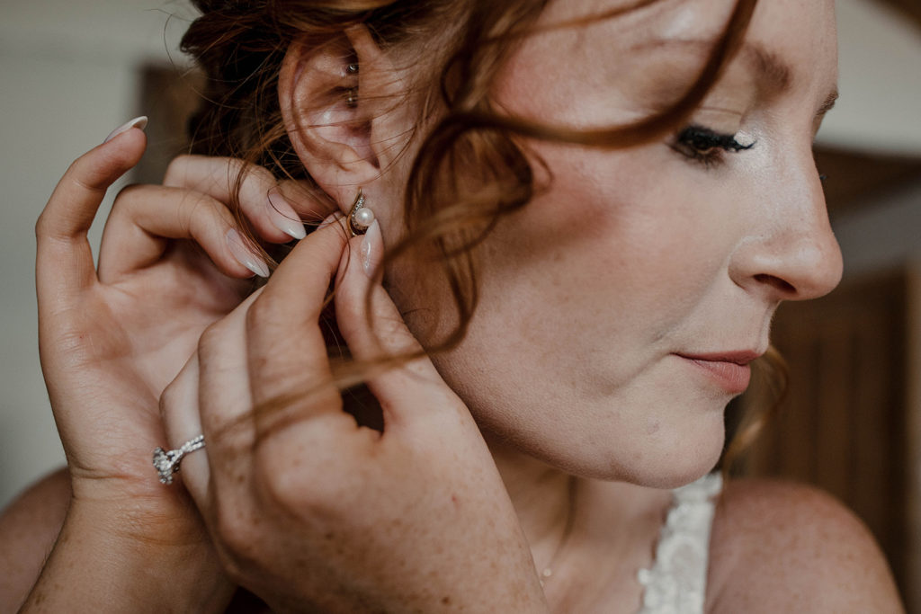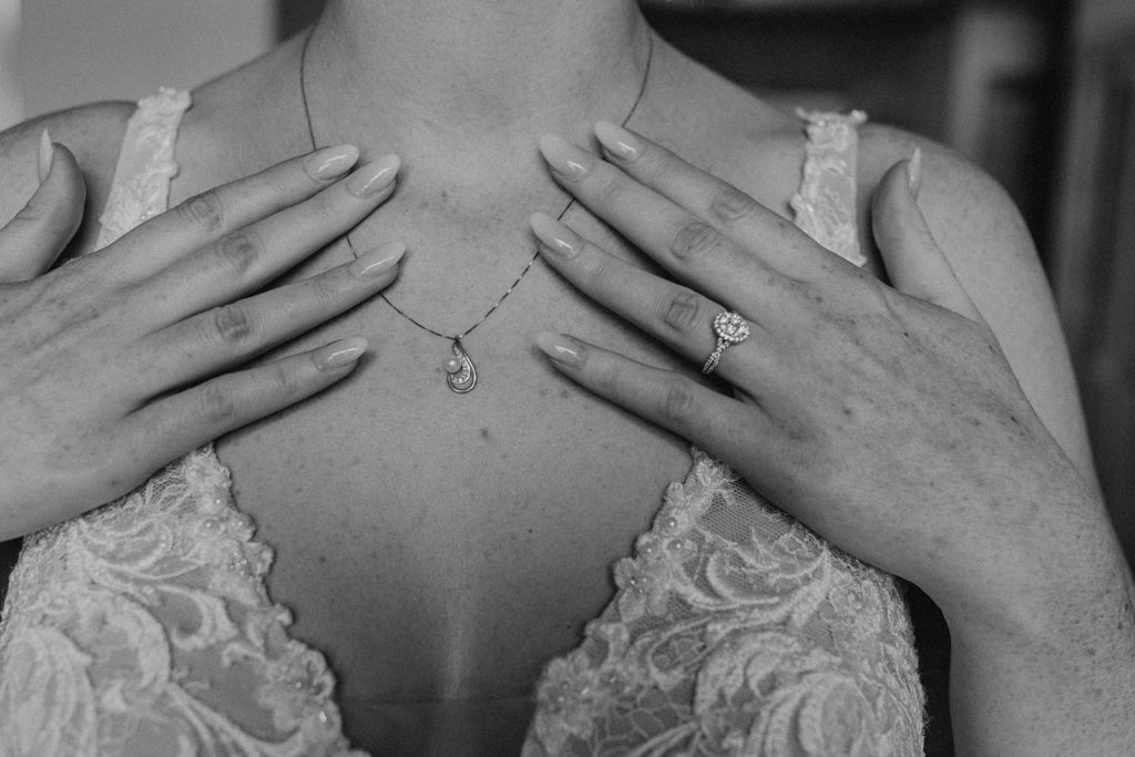 Rose & Dylan’s wedding was so sweet & filled with love. I was able to work with a new videographer, Candace Bell Productions, & she was just SO lovely to work with. We started the day at Rose’s parent’s place to get her ready. We did details on the deck, hanging her dress, bridesmaids’, & the two flower girl dresses for her twin nieces (yes, I know you just said “awh”). She also borrowed a necklace & earrings from his grandmother, which was a really sweet touch.